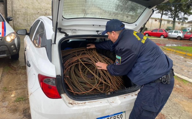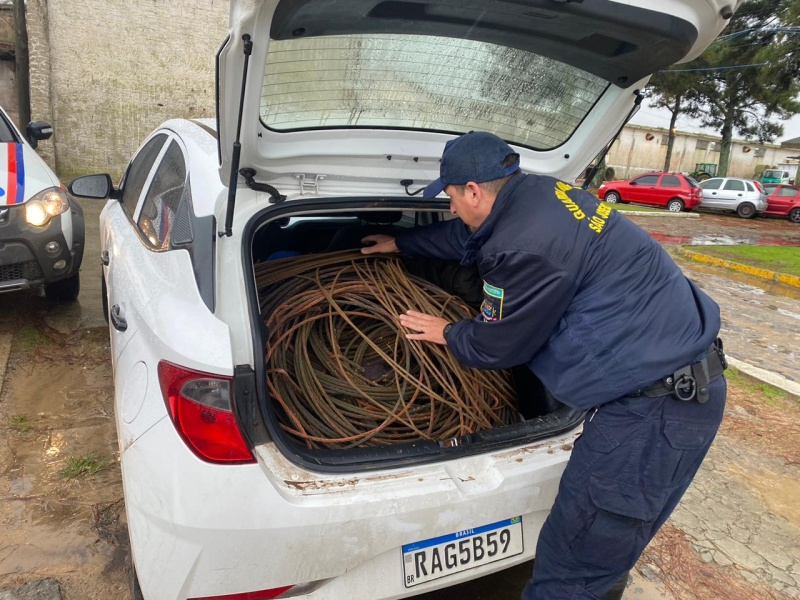 Já o HB20 foi perseguido pela guarnição até a localidade do Capão da Areia, onde ao notar que seria capturado o suspeito abandonou o veículo na rodovia e fugiu correndo em direção ao mato. Dentro do HB20 foram encontrados aproximadamente 240 kg de fios oriundos da rede elétrica da Ceee Equatorial e documentos do veículo.