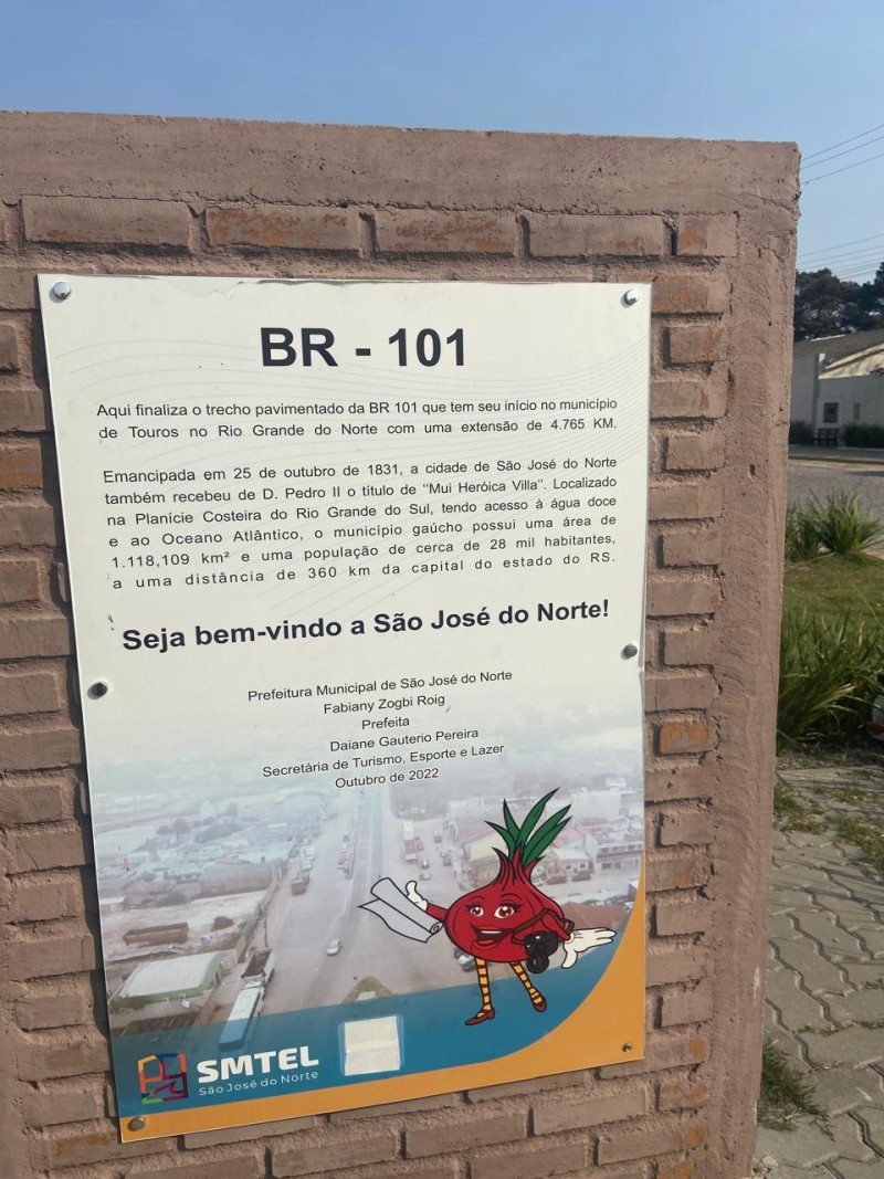 Desde 2017, a Secretaria Municipal de Turismo, Esporte e Lazer tem trabalhado incansavelmente junto ao DNIT para esclarecer um ponto crucial para São José do Norte: a localização exata do marco final da BR-101 em nosso município. Apesar dos esforços, ainda não obtivemos uma resposta definitiva sobre essa informação essencial para o planejamento e a identidade local.