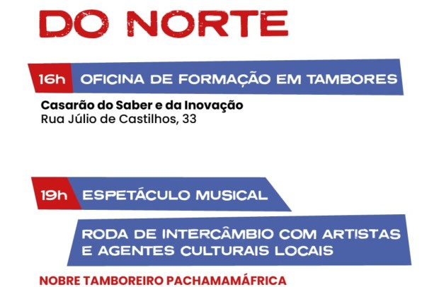 O público terá acesso a duas atividades formativas e ao espetáculo musical. Às 16h, ocorre a oficina de formação em tambores, aberta a todos os interessados, com foco na história, diversidade e contribuição dos tambores para a memória social e cultural. Às 19h, será apresentado o espetáculo musical, seguido de uma roda de intercâmbio com artistas e agentes culturais locais para debater a economia criativa em torno dos tambores e o fortalecimento de uma rede estadual de tamboreiros.