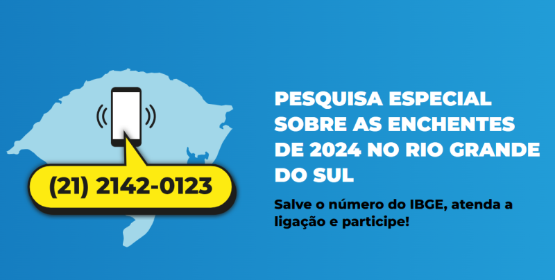 O Instituto Brasileiro de Geografia e Estatística (IBGE) iniciou em setembro a Pesquisa Especial sobre as Enchentes de 2024 no Rio Grande do Sul (PEERS), um levantamento inédito que busca compreender os efeitos da tragédia climática sobre a população atingida. A coleta de informações será feita até o dia 19 de dezembro, exclusivamente pelo telefone (21) 2142-0123.