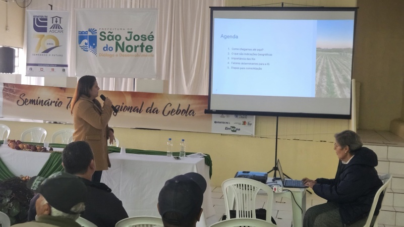 Ainda na tarde, ocorreram dois importantes painéis: o primeiro com foco em Crédito e Seguro Agrícola, ZARC e Proagro, apresentado por José Cleber Souza, do Ministério da Agricultura e Pecuária, com moderação de César Demenech. O segundo painel abordou a temática da Indicação Geográfica da Cebola, com palestra de Cíntia Franco, da Embrapa, e mediação de Daniela Leite, também da instituição.